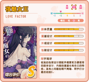 夜魅的包装风格采用了夜店风格的暗紫色,所用的文字也是比较男性受一些的带有勾引性质的话语。主体人设这块够色漆和诱惑,露背装礼服将背部的轮廓曲线完全展示,还能看见一点点股沟的曲线,让人无限遐想。唯一需要吐槽的就是衣服的质感画的实在不咋样,有一种衣服是花在皮肤表面的感觉,要是加强下质感或者分层看起来会更有诱惑力。