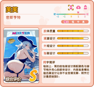 芙芙的这个人设想必二游老玩家都是熟悉的,这蓝色长发+水元素相关的角色属性很明显取材自《原神》里的芙宁娜,这也和密斯亨特这个牌子一心钻研二次元方向的品牌理念相和。芙芙这身结合了泳装与兔女郎的衣服是我觉得最有色气度的点,也不知道是哪个高手想出的设计理念。芙芙这款的包装选择了很简洁的设计,对胶体完全没有展示,稍微偏涩一点的立绘也是选择了封皮的方式可以取下来,所以如果你是害怕买杯子被家里人发现的那一类人的话这款在安全性上你是可以相信的。还有一个很特别的点,芙芙的内部采用的是泡沫盒作为保护,和传统杯子的塑封保护壳不同。从保护能力上来说这两者的差别不大,但泡沫盒可以规避运输过程中塑封盒破损进而划坏胶体的问题,但这个属于很极限的很少见的情况。