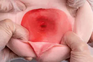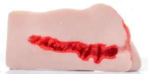 通道部分虽然整体偏软,但内部依然保持了该有的紧致感。入口较小且比较厚,所以在进入的时候就能感觉到相当程度的阻隔感了。之后的通道是多个环状突破口的连续组合,通过这种排列的方式让这种材质偏软的杯杯也能感受到紧致的感觉,使用的时候不得不感慨一句:你好会夹哦。单是用比较细的手指进入的时候就会在中段“碰壁”难以前行,实际进入的时候也是这样,中段的通道抬升和变窄让你在这一段能感觉到很强的肉感和阻隔感。后续的通道也都是这样的窄度,所以即使胶体达到了“very soft”的程度,依然能保持一定的刺激性。