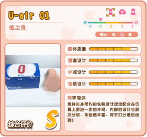 我们趁热打铁,来聊聊彼之良的另一款飞机杯系列U-air系列。这个系列的杯杯与前一款不同,全部使用硅胶材质,今天我们测的是U-air 01(后续简称为Ua01)。