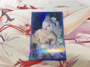 彼之良的包装还是一如既往的简洁,搞得我实在没什么可以细聊的了,就来聊一下几处不同的地方吧。这次的小卡片里附赠了一张coser的照片,cos的是胜利女神nikke里面的灰姑娘。我还特意去博主那里看了下原图包,确实还挺涩,具体的去直接搜博主的名字就能看到了。明显的这次的联动比起阿宇之前测过的那款要精细不少,之前那款博主联动包装简陋,产品质量还一般般。Ua06这款至少在观感上就正经了不少,胶体设计和博主联动互动这块做的没毛。