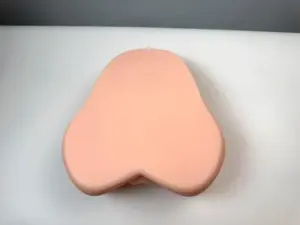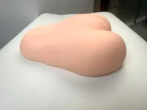 一如开头说到的,床置型可以说是非常极端的设计,他需要实现的目的只有一个,那就是让你在床上可以趴着玩。需要实现这个目的需要解决两个痛点,来自最常见的两类杯杯的。首先是传统小杯子需要手握或者固定才能趴着玩,然后是臀模因为太大导致趴着玩的时候姿势不舒服容易硌到的问题。于是就有了床置型这种看起来就像是把传统的臀模横着一切为二的外形,我觉得第一个做出这种设计的多半也是这种想法。对半切之后平整的那一面可以放在床上,可以有效的避免小杯子需要手扶着的问题。而上半保留的部分又可以增添很大一部分的接触面积,削了一半的高度下去后像传统臀模那种面积太大的问题也很好的缓解了。似乎听起来这是个非常完美的设计,但我想你应该会发现市面上床置类的其实很少,很多大品牌甚至完全没有这一类的产品。原因也正如我上面所说,这玩意太极端了一点,几乎只适配趴着玩这一个选项,同价位的小臀完全可以在这个玩法上低位替代的同时在别的玩法上完全薄纱她。所以这种产品始终处于一个可以有但是没必要有的地位,也自然没什么市场占有率了。