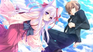 别看名字全是英文,PR这款是完完全全的二次元设计,位于封面的是一位经典的白毛猫耳娘形象,穿着也是gal里经典的大开口巫女服和典中典的红白配色。脸上还有类似胡须一样的条纹,勾勒出一位看起来显得调皮可爱的异色瞳猫娘形象。